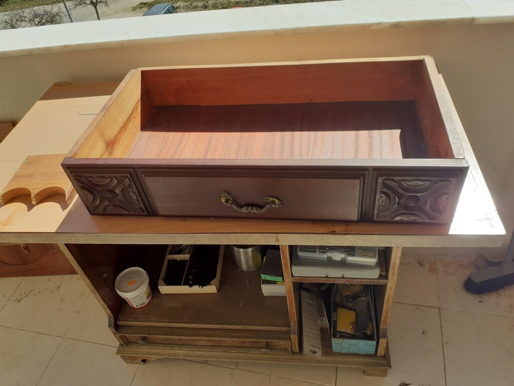 Encontrei duas dessas gavetas na rua e achei que essa parte entalhada daria um belo relógio em um estilo clássico.