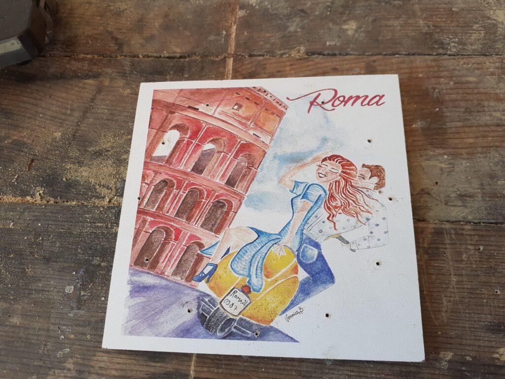 Fiz então o corte e tambem já furei os pontos dos números que receberiam uns preguinhos dourados.