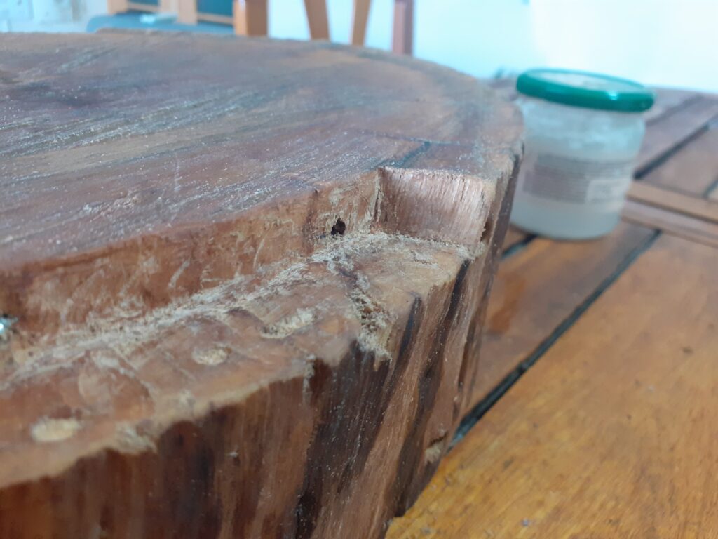 Eu resolvi então fazer o que todos marceneiros não recomendam, fazer uma tábua com madeira que ainda não está seca. Se não for feito o processo de secagem corretamente, a madeira com certeza vai rachar.